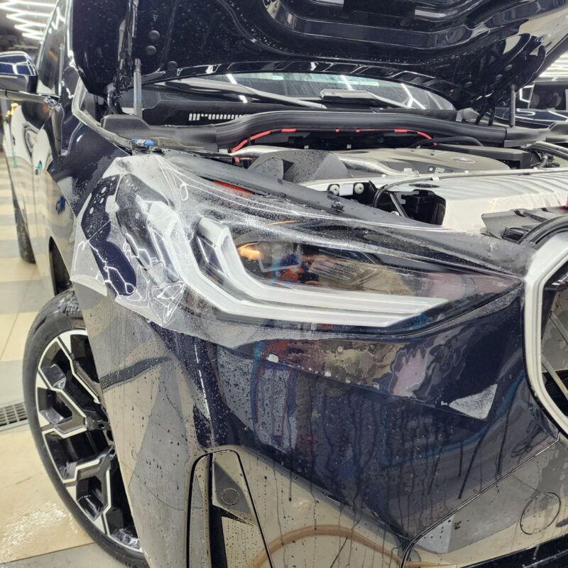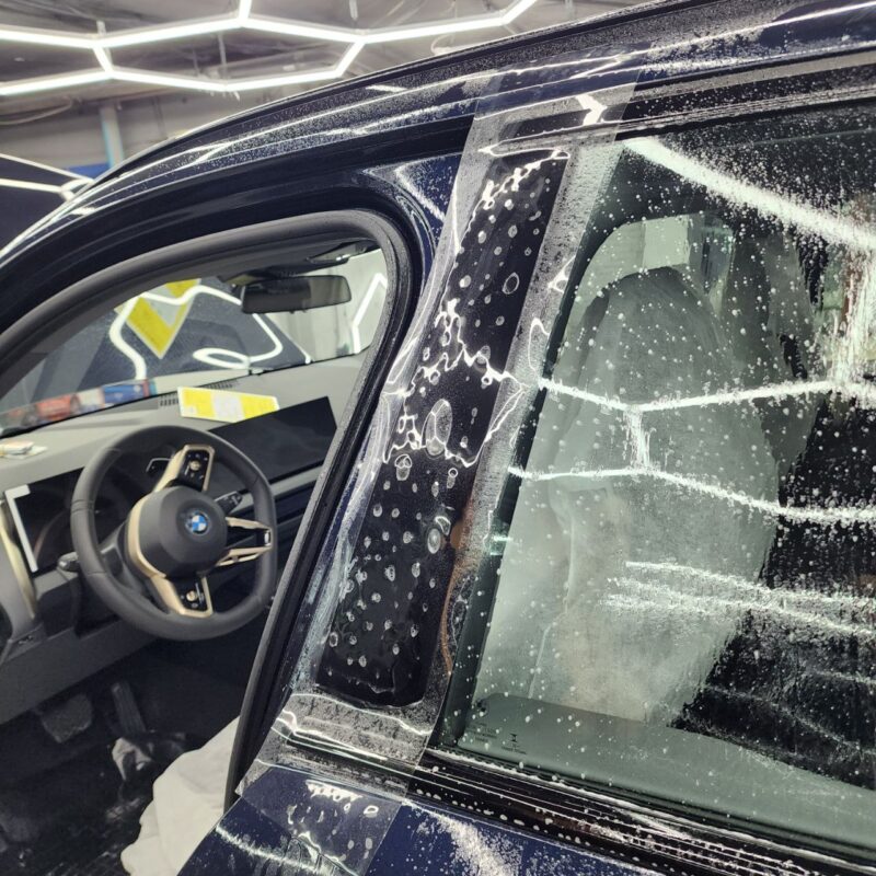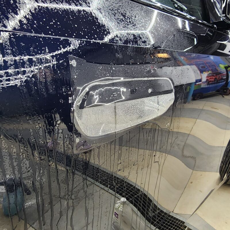 — Забронировали прозрачной полиуретановой плёнкой капот, фары, под ручками, зона погрузки, пороги и глянцевые стойки дверей!