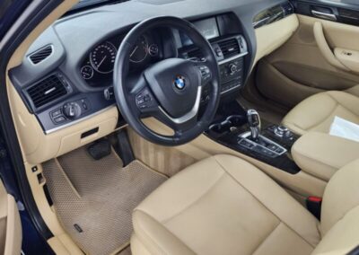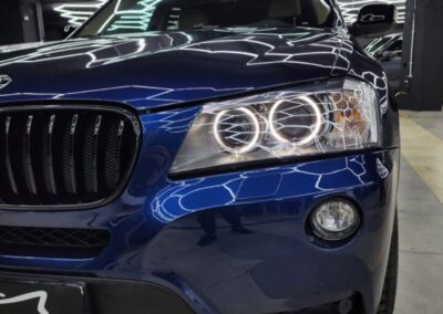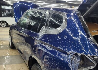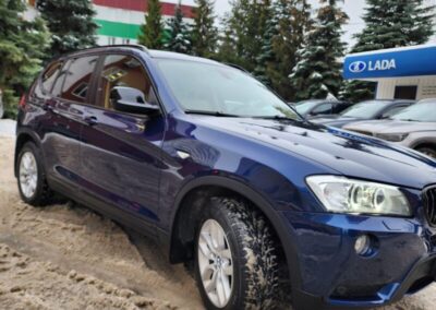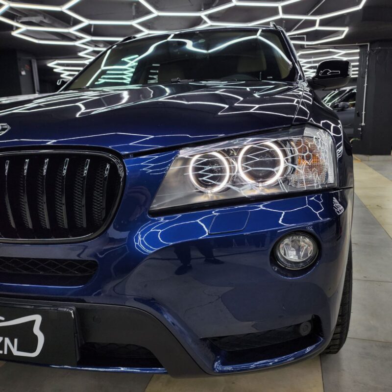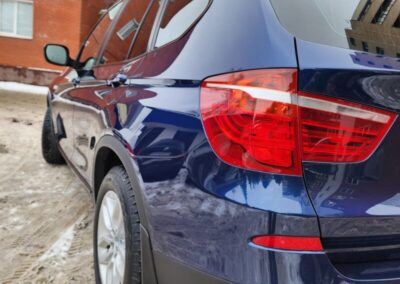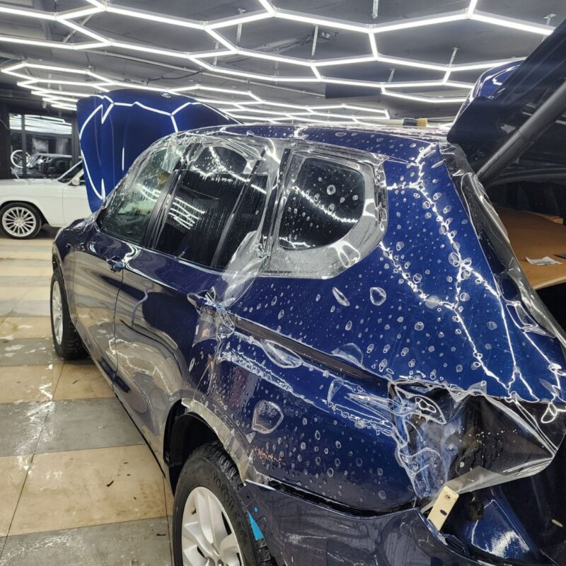 BMW X3 F25 — оклеили весь кузов полиуретановой плёнкой. Предварительно сделали полировку, закапали множество сколов, передний бампер перекрасили целиком, сделали ремонт 16-ти вмятин без покраски. Сделали химчистку светлого салона. Результат превзошёл все ожидания.