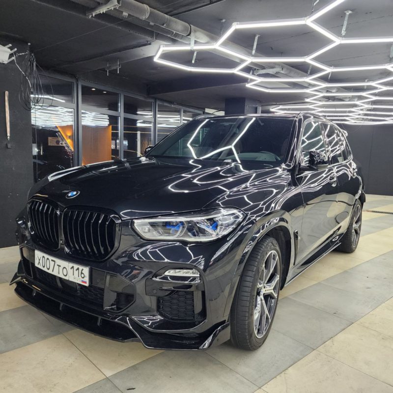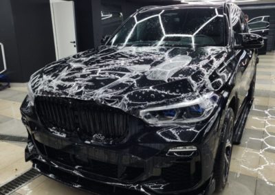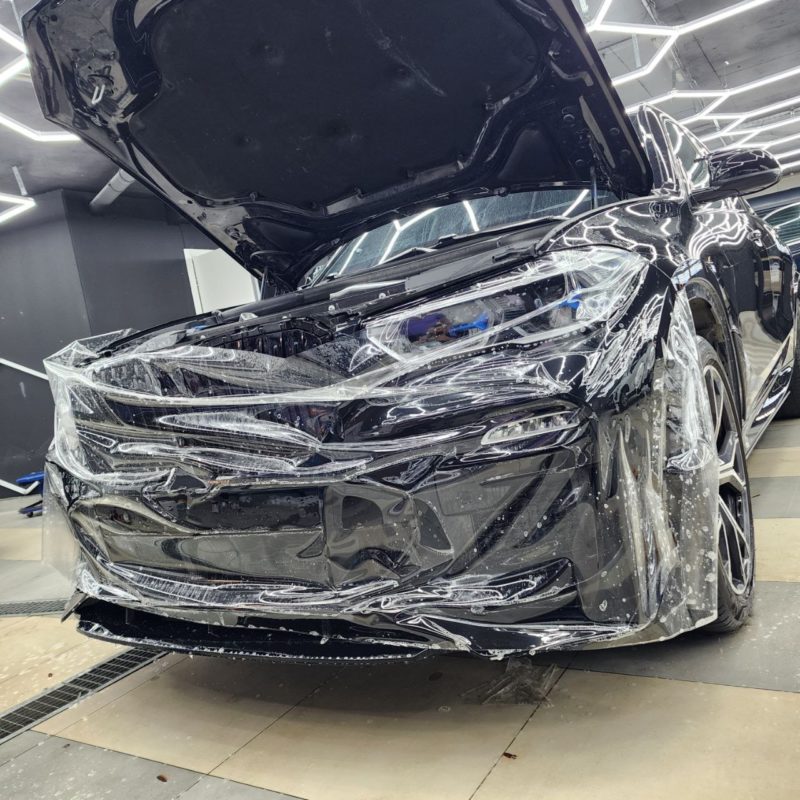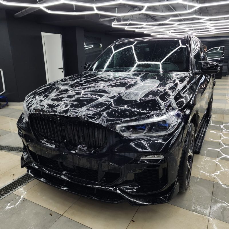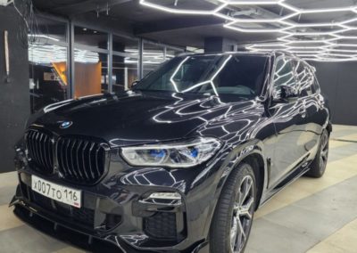 BMW X5 G05 переклеили бампер и капот полиуретановой плёнкой. Ранее бронировали весь кузов, отличная защита, нет царапин после зимней эксплуатации, нет сколов.