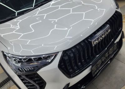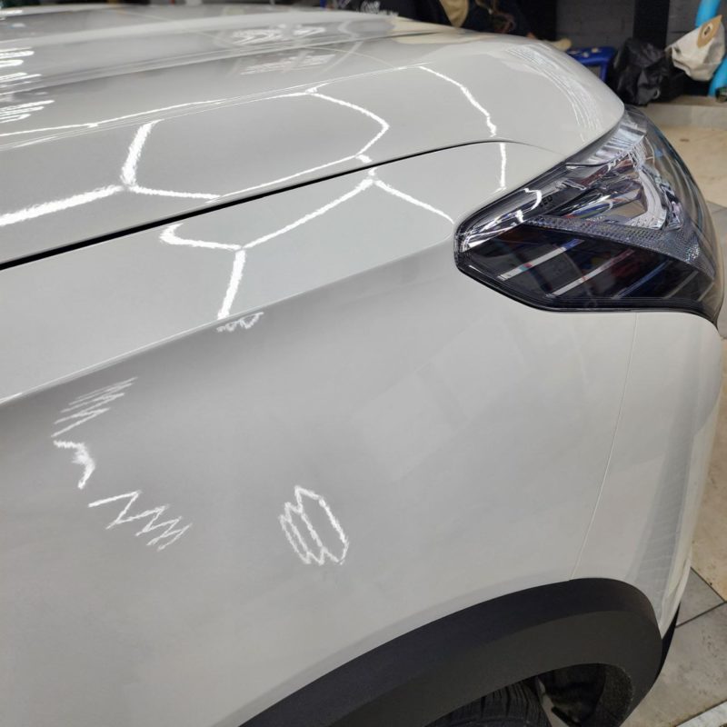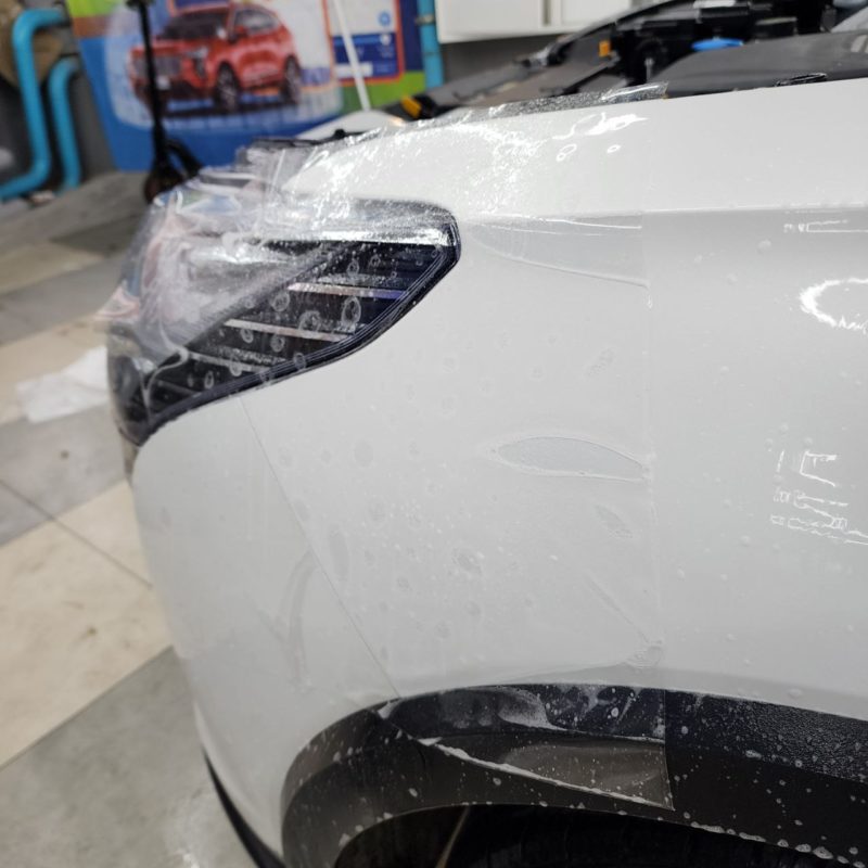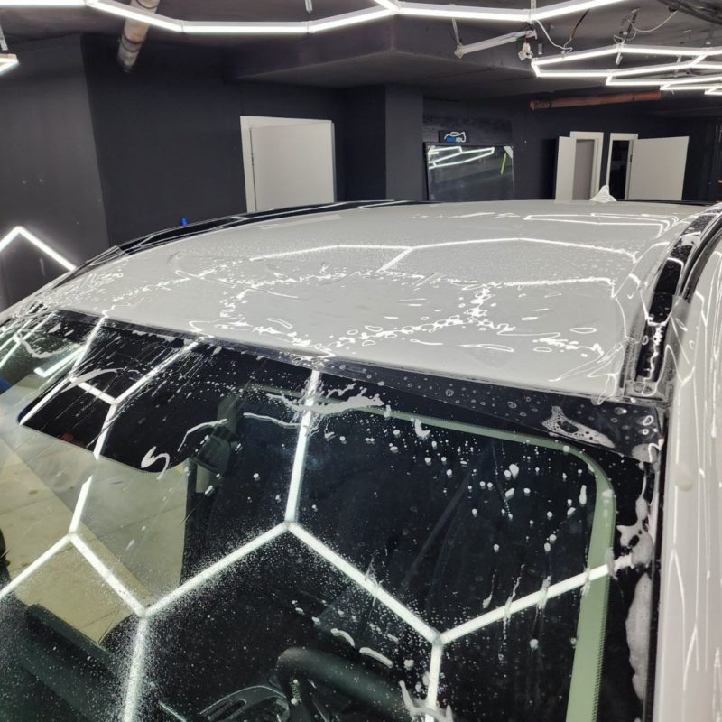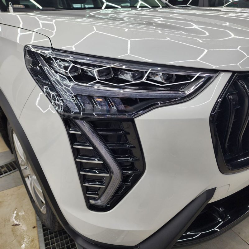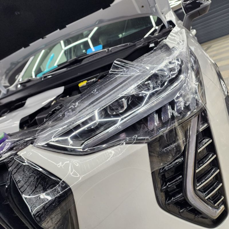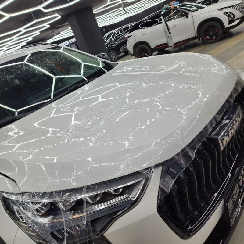 Забронировали прозрачной полиуретановой плёнкой передние фары, дхо, часть капота, крыльев и крыши!