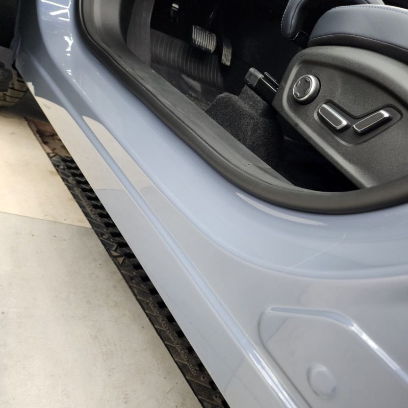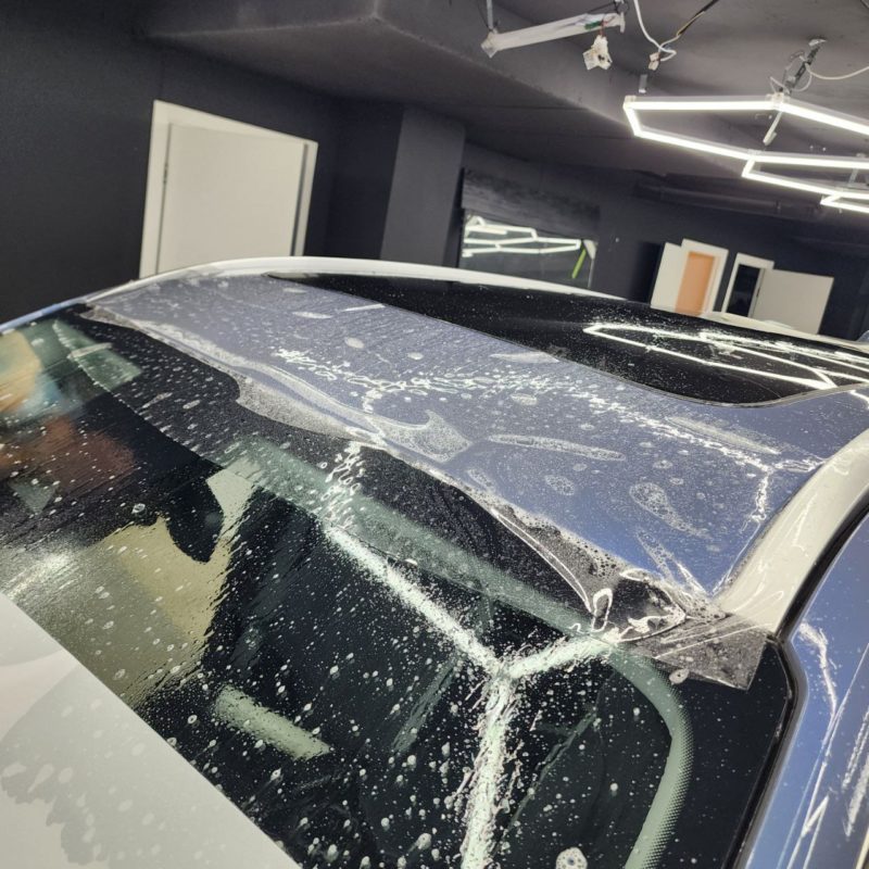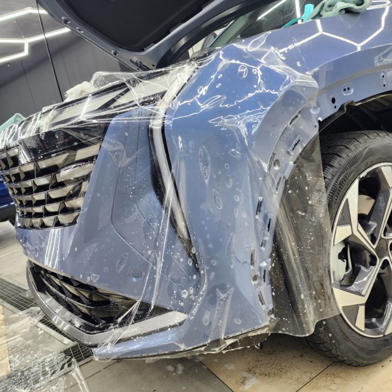 — Сделали комплексное бронирование кузова, защитили полиуретановой плёнкой капот, бампер, фары, стойки возле лобового, часть крыши, зеркала, под ручками и внутренние пороги. Те самые основные зоны риска повреждения по привлекательной цене!