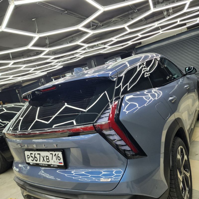 — Была сделана тонировка задней полусферы автомобиля плёнкой Ultra Vision Supreme 85% и передней полусферы атермальной плёнкой синеватого оттенка 20%.