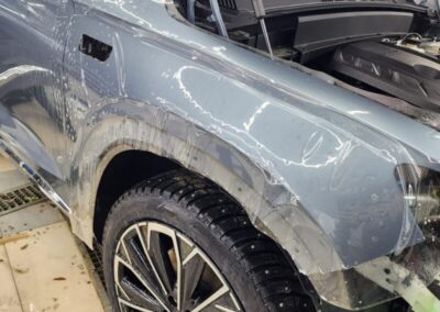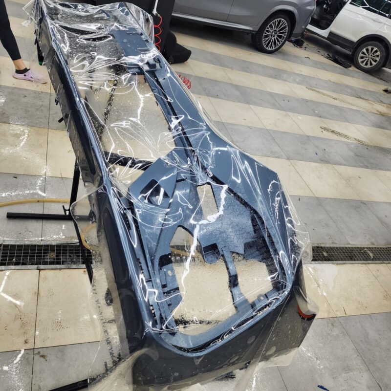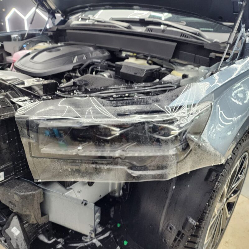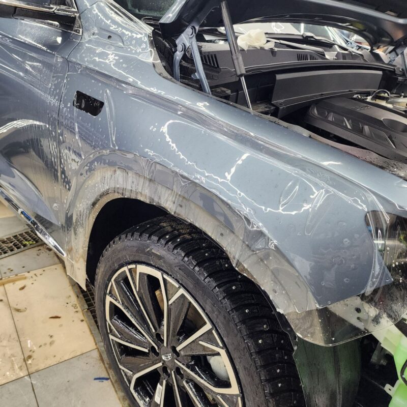 — Сделали комплексное бронирование кузова, защитили прозрачной полиуретановой плёнкой капот, бампер, фары, передние крылья, стойки возле лобового, часть крыши, зеркала, под ручками, пороги, погрузочную зону заднего бампера. Те самые основные зоны риска повреждения по привлекательной цене! Дополнительно забронировали лобовое стекло с атермальным эффектом.