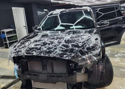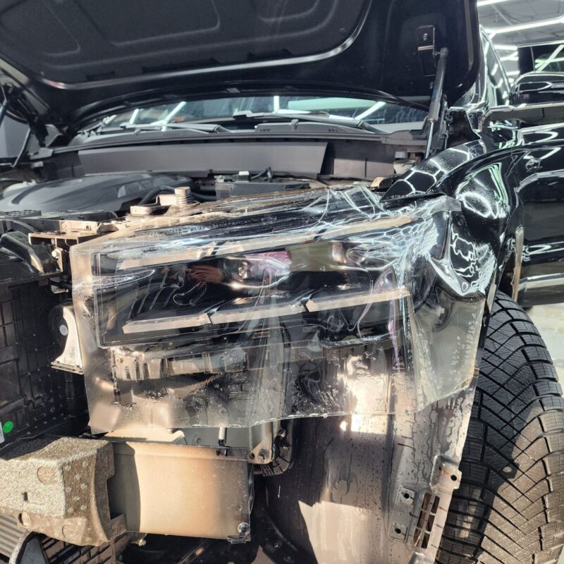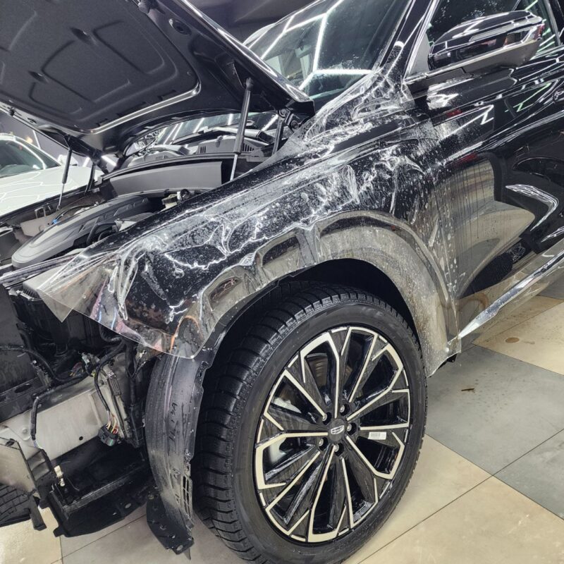 — Сделали комплексное бронирование кузова, защитили прозрачной полиуретановой плёнкой капот, бампер, фары, передние крылья, стойки возле лобового, часть крыши, зеркала, под ручками, пороги, погрузочную зону заднего бампера. Те самые основные зоны риска повреждения по привлекательной цене!