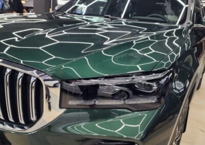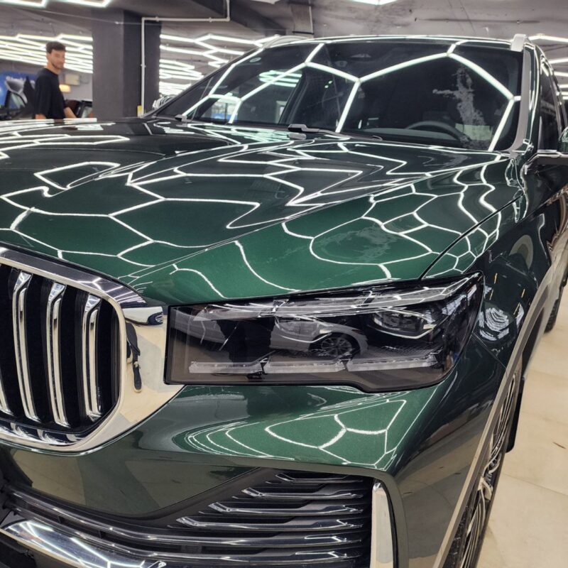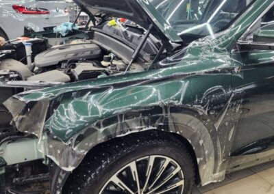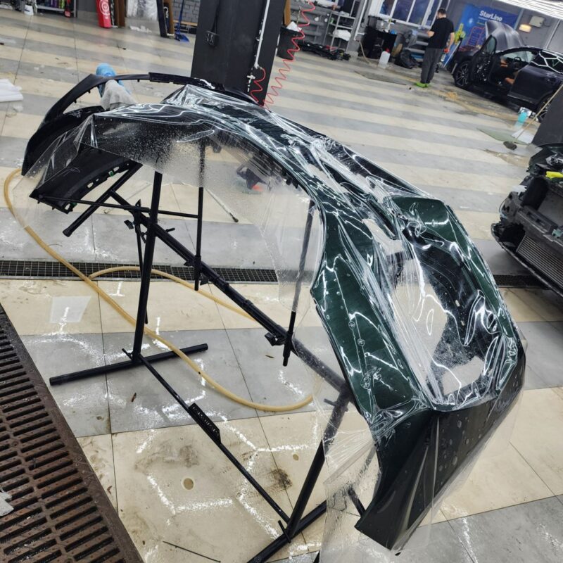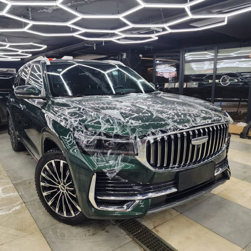 — Сделали комплексное бронирование кузова, защитили прозрачной полиуретановой плёнкой капот, бампер, фары, передние крылья, стойки возле лобового, часть крыши, зеркала, под ручками, пороги, погрузочную зону заднего бампера. Те самые основные зоны риска повреждения по привлекательной цене! Дополнительно забронировали низ дверей.