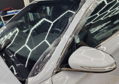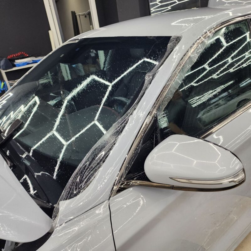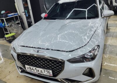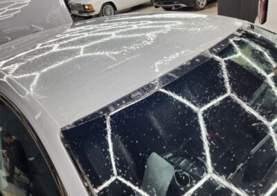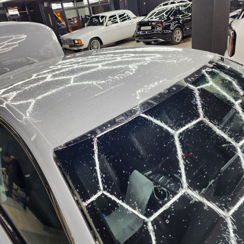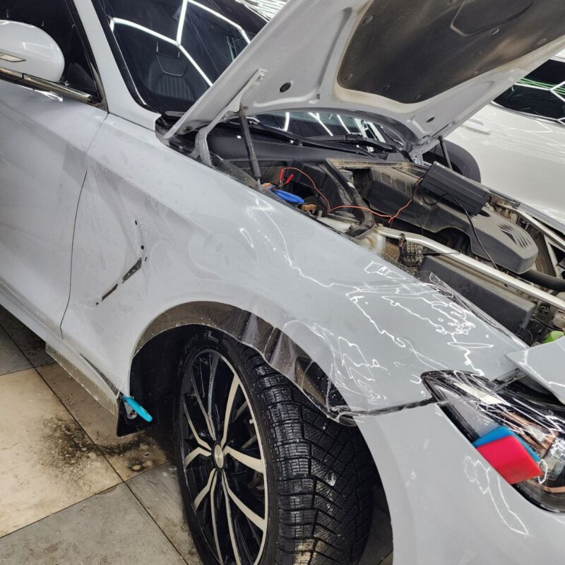 Забронировали прозрачной полиуретановой плёнкой капот, стойки возле лобового стекла, часть крыши, под ручками, пороги внутренние, передние крылья и зона погрузки.