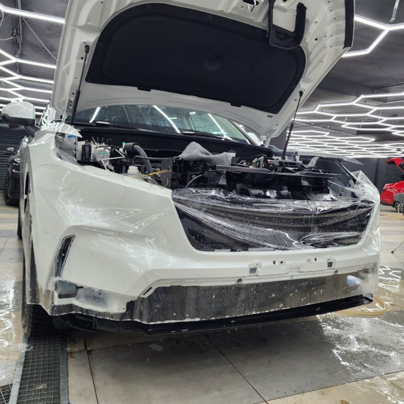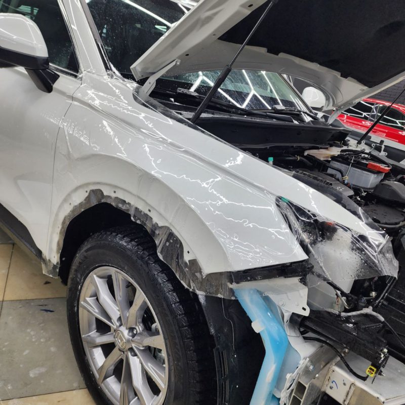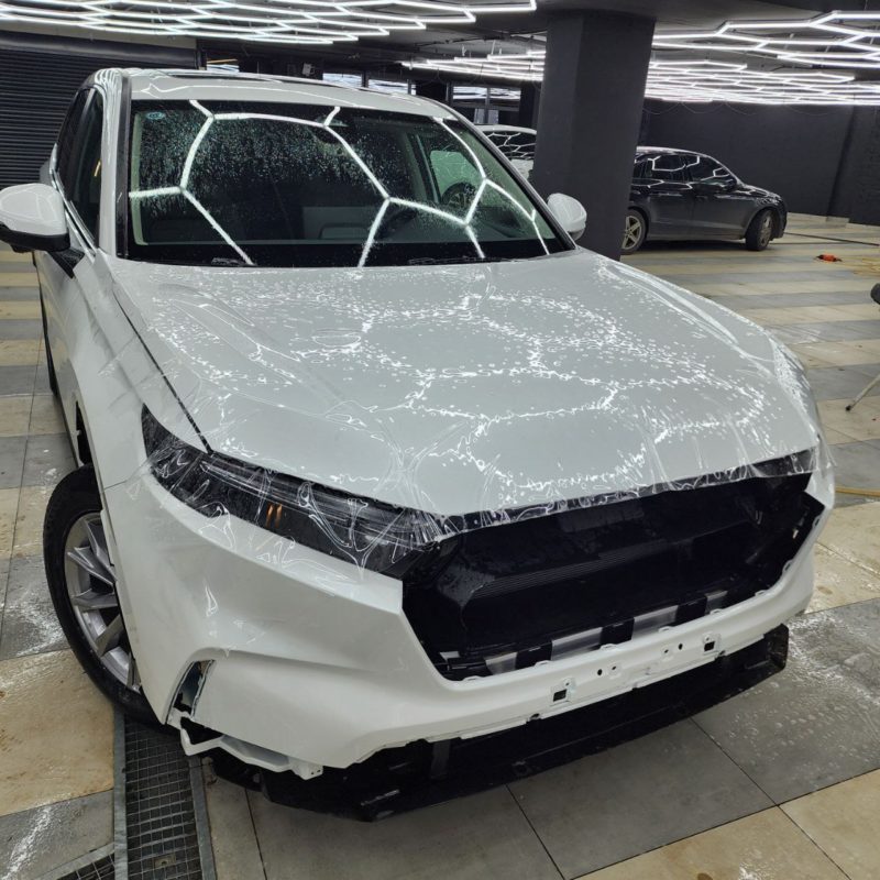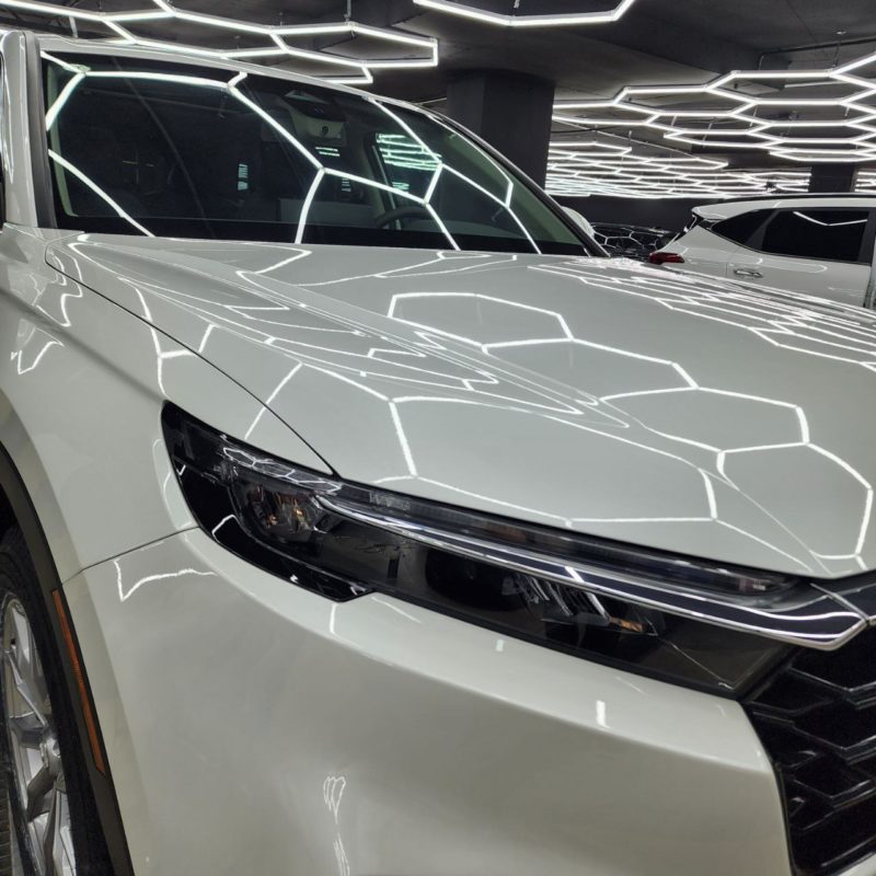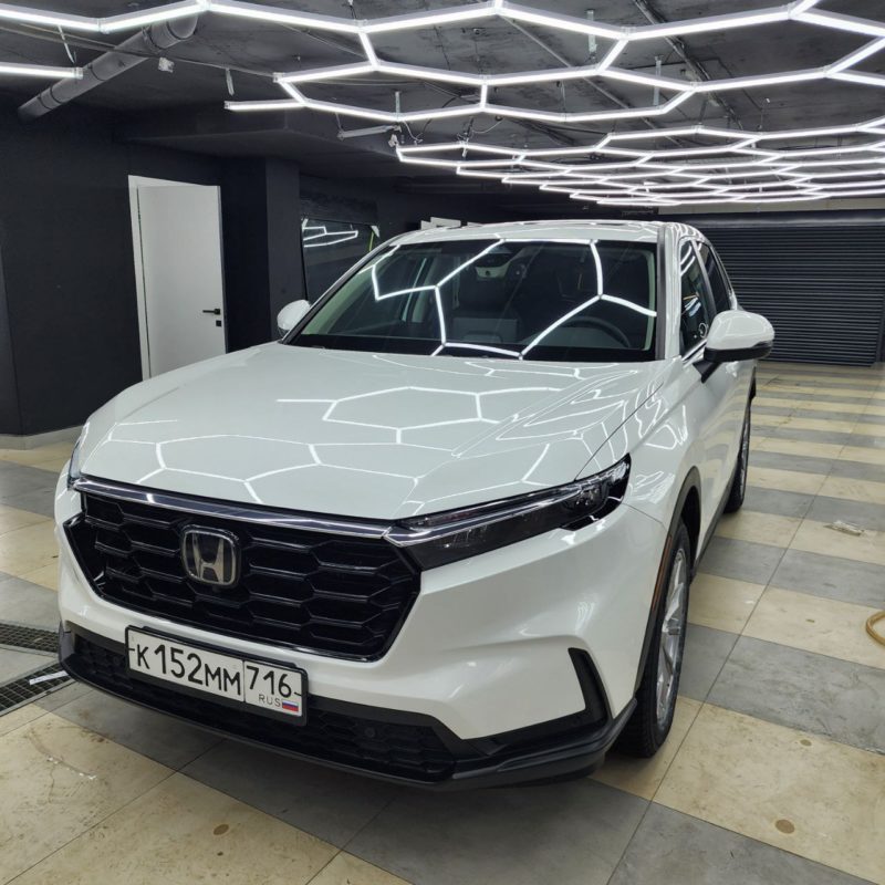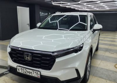 Honda CR-V — забронировали полиуретановой плёнкой капот, бампер, фары, передние крылья, часть крыши. Лобовое стекло так же под защитной плёнкой.