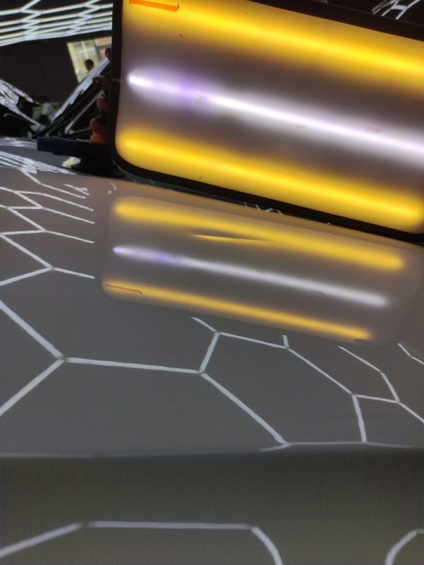 — Устранили вмятину на капоте без покраски по технологии PDR.