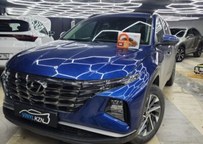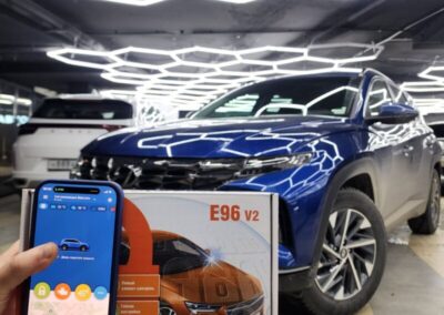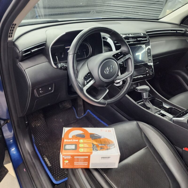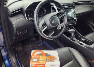 Hyundai Tucson установили охранный комплекс StarLine E96 GSM eco. Сигнализация с брелком и GSM модулем для управления с телефона. Гарантия до 5 лет. Так же затонировали фары и ходовые огни полиуретановой плёнкой.