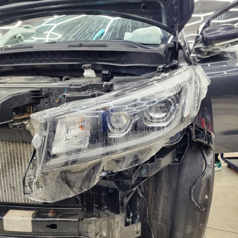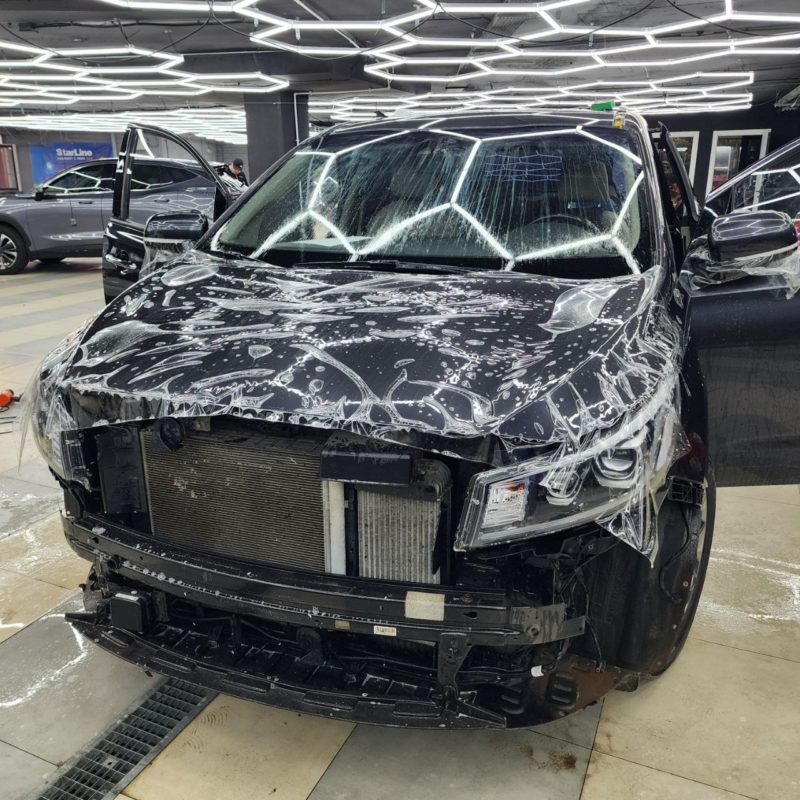— Сделали бронирование прозрачной полиуретановой плёнкой передней части и всех зон риска повреждения автомобиля! Отличная и надёжная защита лкп от сколов, царапин и пескоструя!
