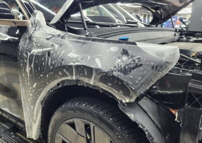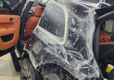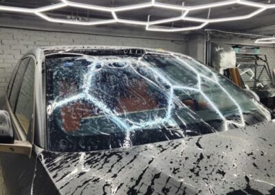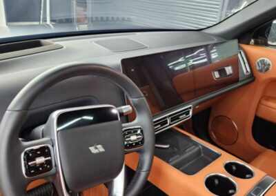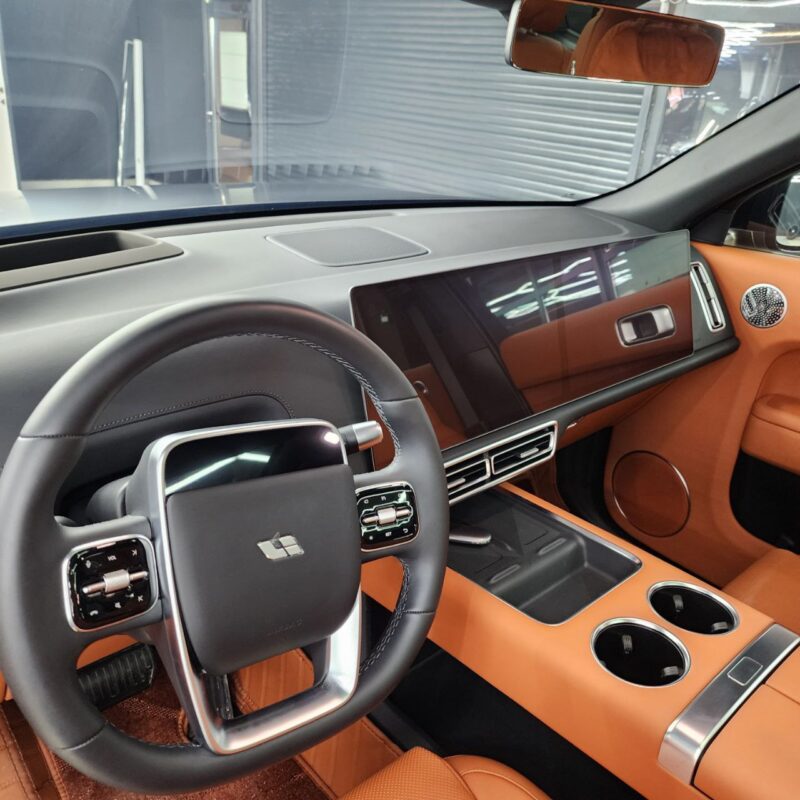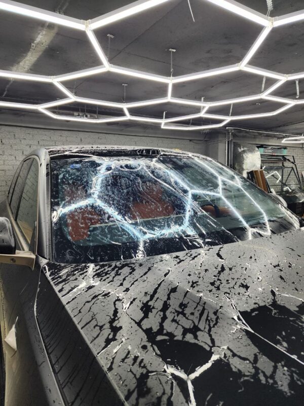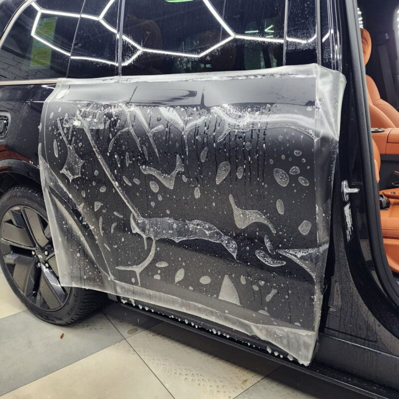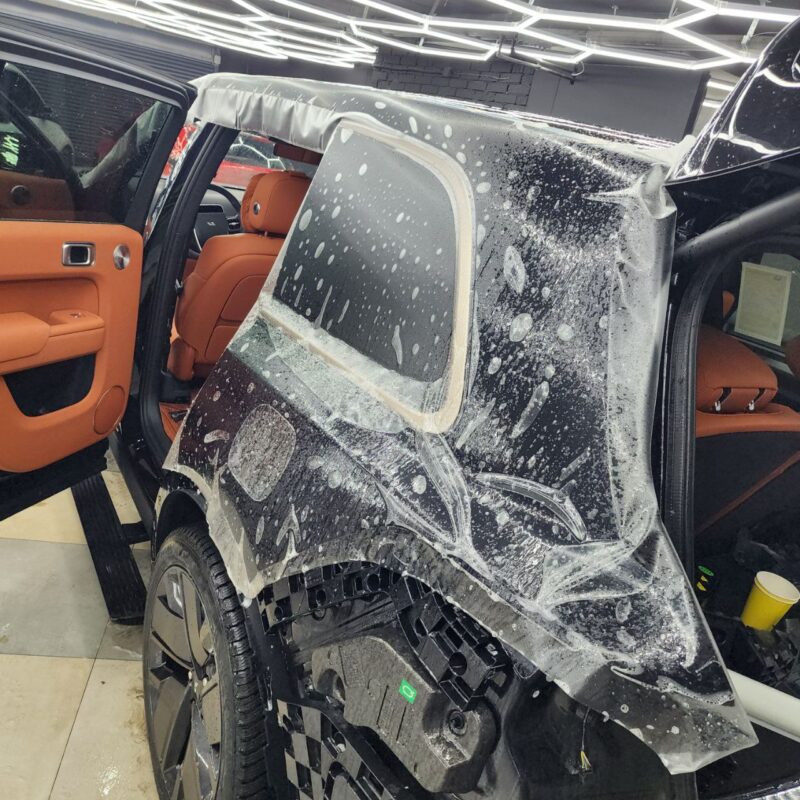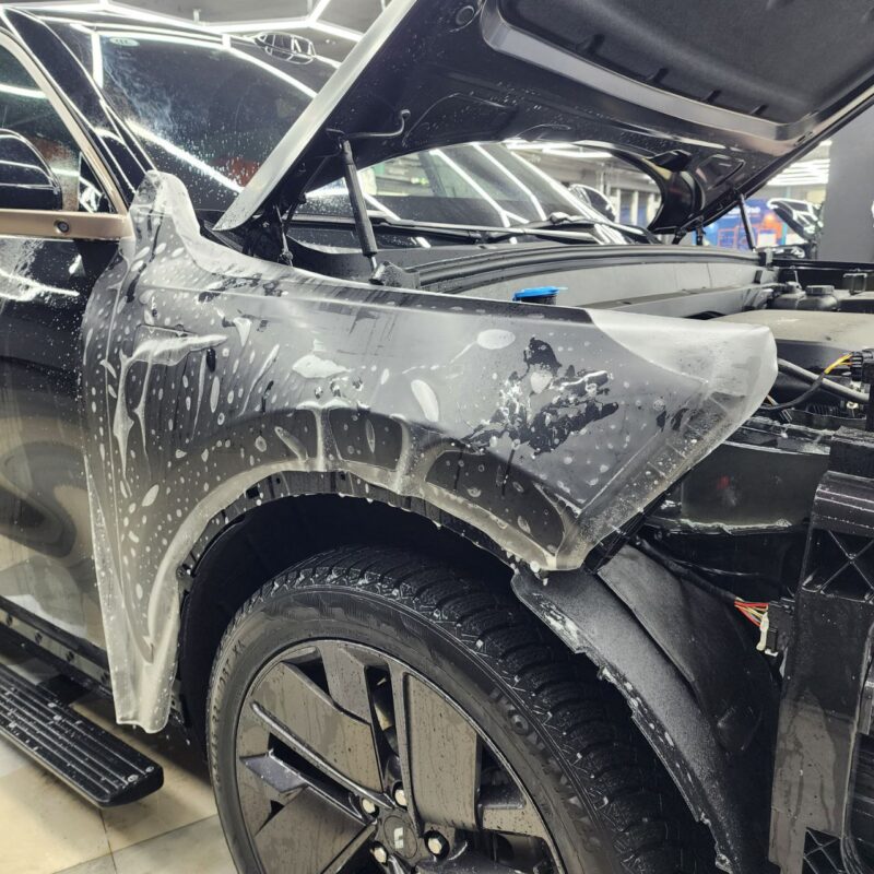 — Забронировали весь кузов матовой прозрачной полиуретановой плёнкой. Дополнительно оклеили панораму, глянцевые стойки дверей, лобовое стекло с атермальным эффектом и мониторы в салоне также защитили.