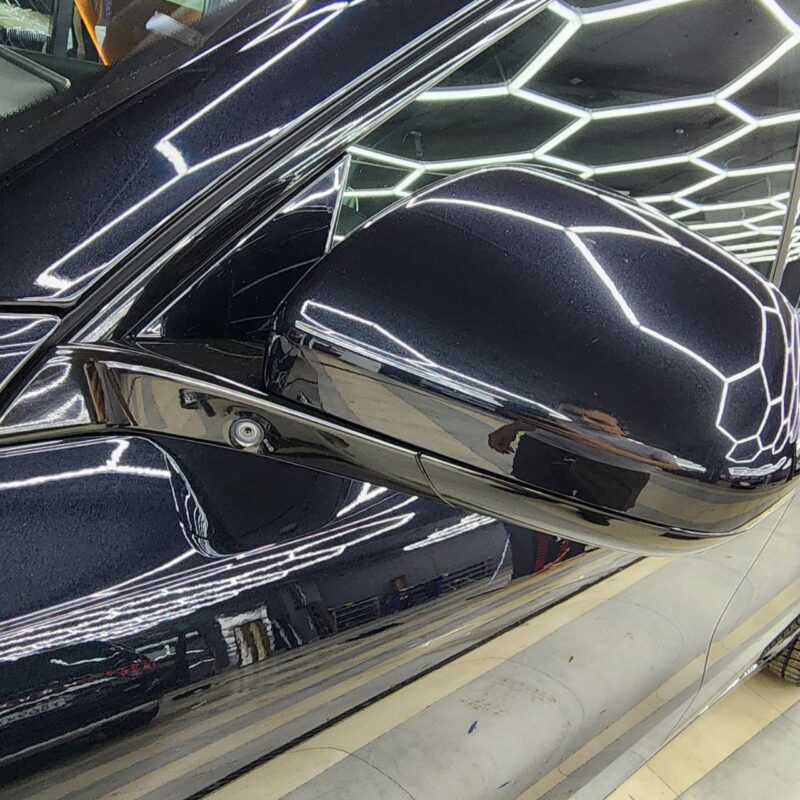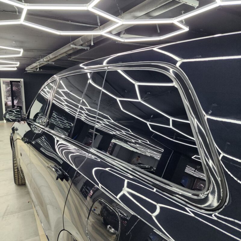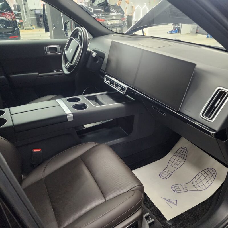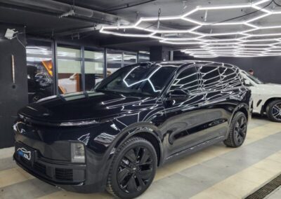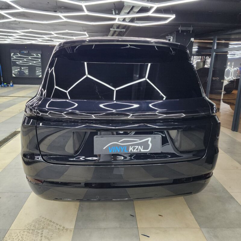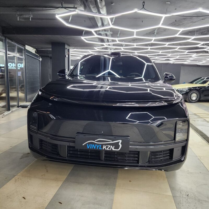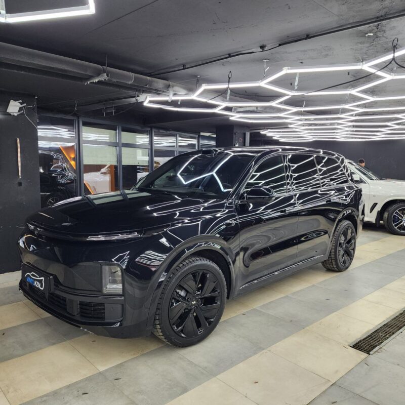 Lixiang L9 — сделали антихром по всему автомобилю. Притемнили передний ходовой огонь и задние фонари полиуретановой плёнкой. Сделали химчистку салона, отремонтировали порез на водительском сидении. Сделали коррекцию пленки по всему кузову. Помыли подкапотное пространство.