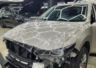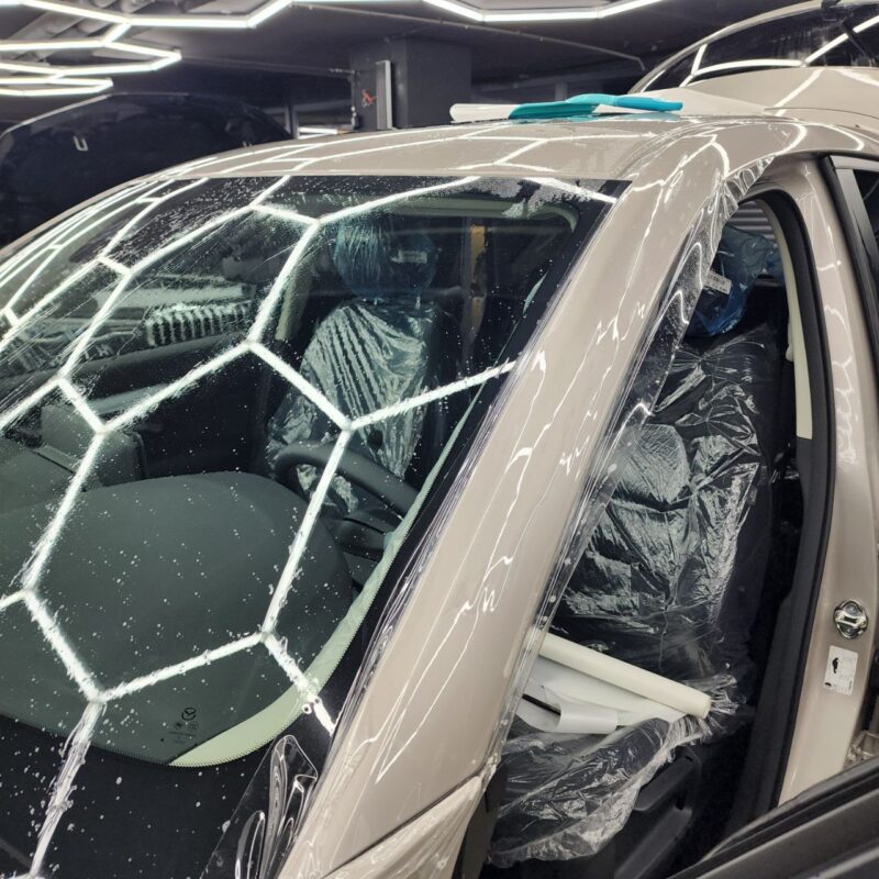 — Сделали комплексное бронирование кузова, защитили прозрачной полиуретановой плёнкой капот, бампер, фары, передние крылья, стойки возле лобового, часть крыши, зеркала, под ручками, пороги, погрузочную зону заднего бампера. Те самые основные зоны риска повреждения по привлекательной цене!