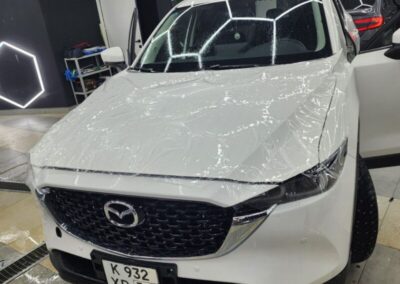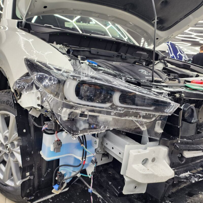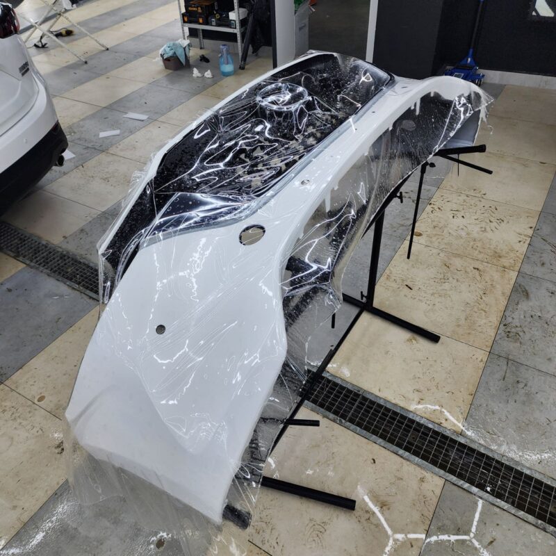 — Сделали комплексное бронирование кузова, защитили прозрачной полиуретановой плёнкой капот, бампер, фары, передние крылья, стойки возле лобового, часть крыши, зеркала, под ручками, пороги, погрузочную зону заднего бампера. Те самые основные зоны риска повреждения по привлекательной цене!