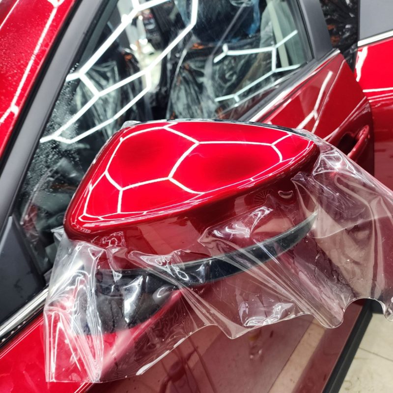 — Сделали комплексное бронирование кузова, защитили полиуретановой плёнкой капот, бампер, фары, передние крылья, стойки возле лобового, часть крыши, зеркала, под ручками, пороги, погрузочную зону заднего бампера. Те самые основные зоны риска повреждения по привлекательной цене.