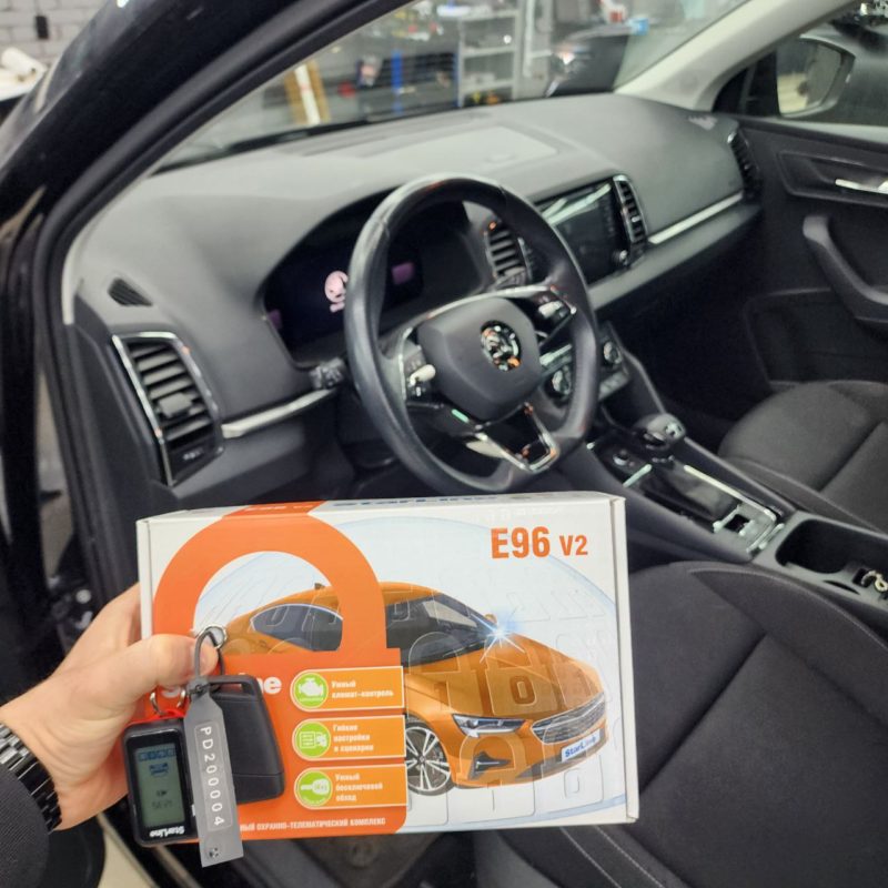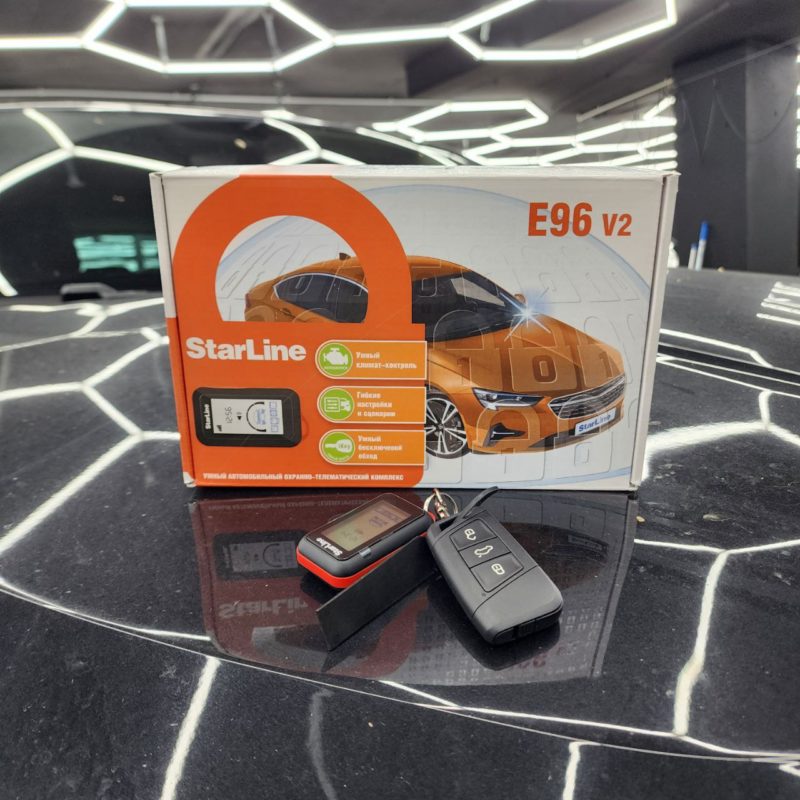 Установили охранный комплекс с автозапуском с удобного брелка и управление автомобиля с телефона StarLine Е96 GSM eco. Удобное приложение, гарантия до 5 лет.