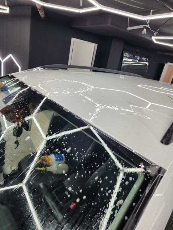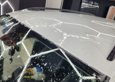 Забронировали прозрачной полиуретановой плёнкой капот и часть крыши. Хорошая и надёжная защита от сколов, царапин и пескоструя!