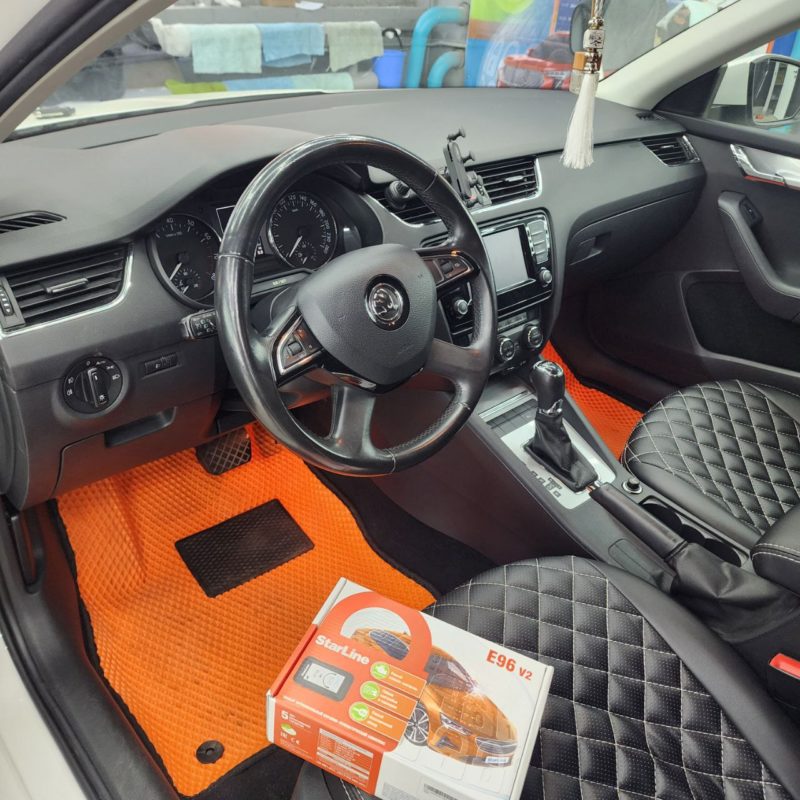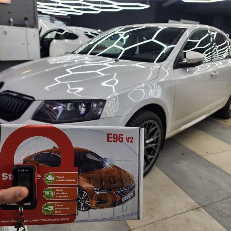 Skoda Octavia установили охранный комплекс StarLine E96, управление через удобный брелок, есть автозапуск по таймеру, по температуре. Гарантия 5 лет.