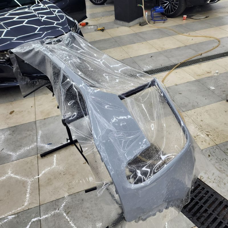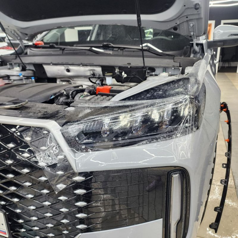 — Забронировали прозрачной полиуретановой плёнкой капот, фары и бампер.