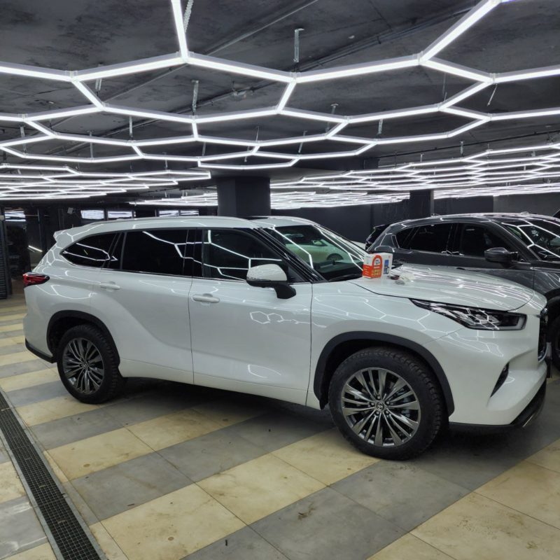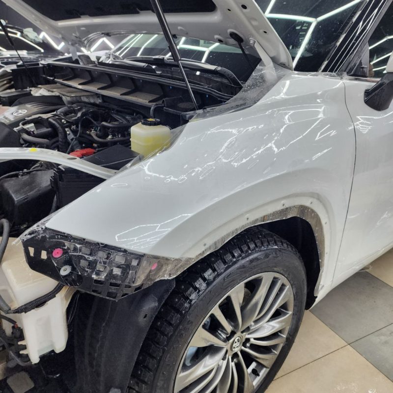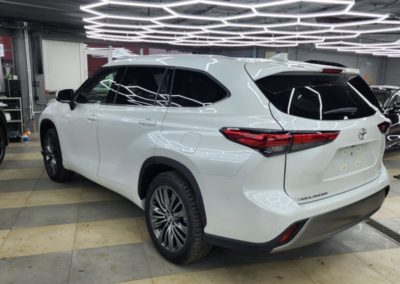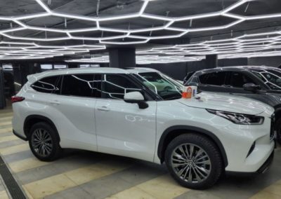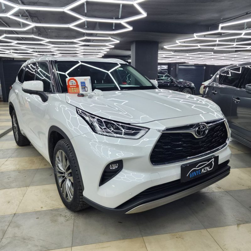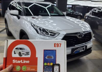Toyota Highlander — сделали комплексное бронирование кузова, защитили капот, бампер, фары, передние крылья, стойки возле лобового, часть крыши, зеркала, пороги, погрузочную зону заднего бампера. Плюсом забронировали 4 двери с нижним накладками. Установили охранный комплекс с автозапуском StarLine E97, Установили защитную сетку под бампер.