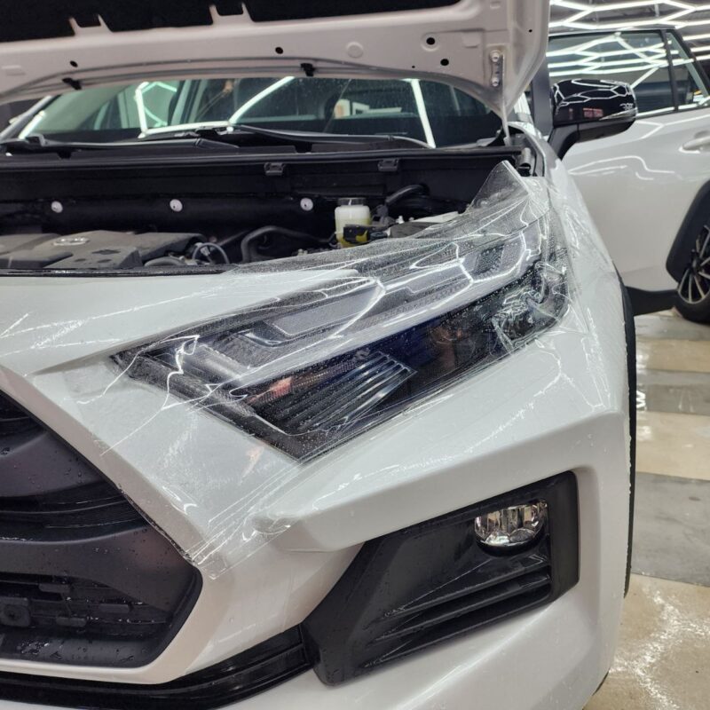 — Забронировали прозрачной полиуретановой плёнкой капот, фары, часть крыши и под ручками!