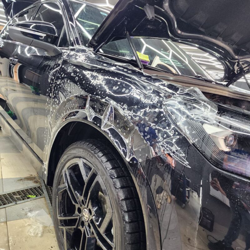 Сделали комплексное бронирование кузова, защитили прозрачной полиуретановой плёнкой капот, бампер, фары, передние крылья, стойки возле лобового, часть крыши, зеркала, под ручками, пороги, погрузочную зону заднего бампера. Те самые основные зоны риска повреждения по привлекательной цене!