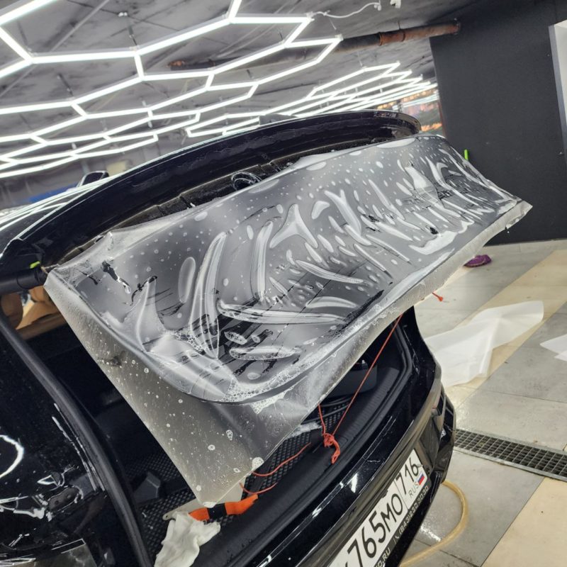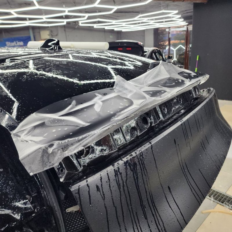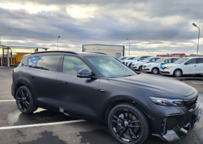 — Оклеили весь кузов автомобиля матовой полиуретановой сатиновой плёнкой.