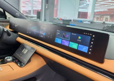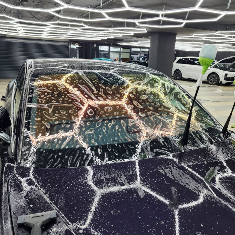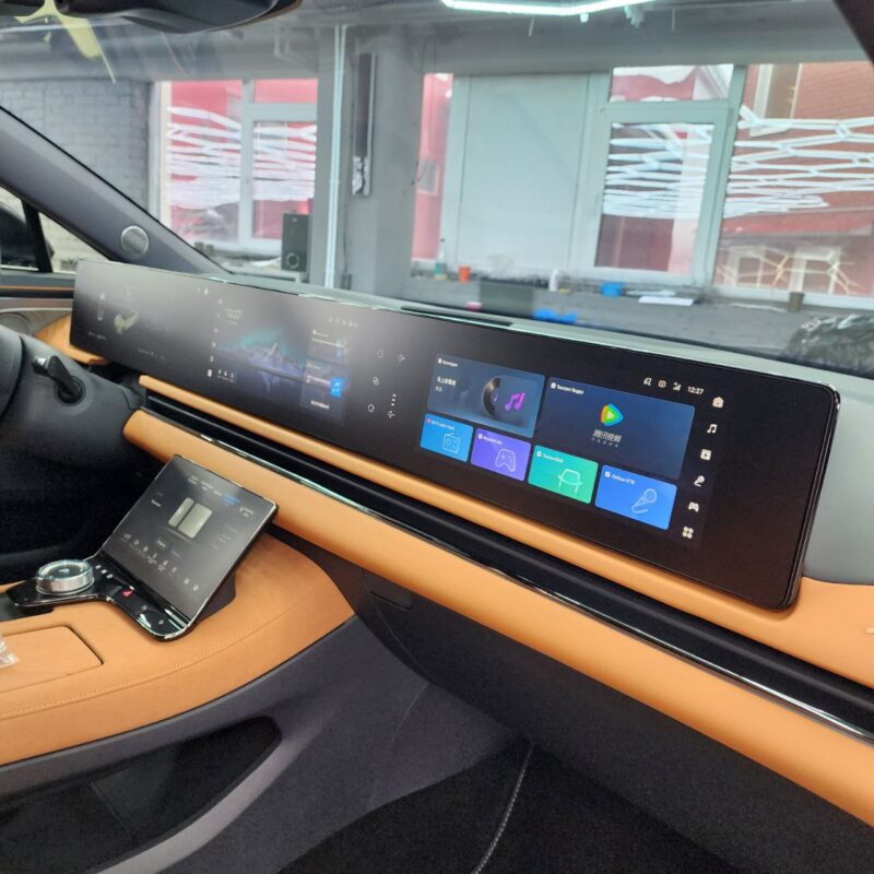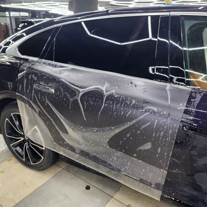 — Забронировали весь кузов прозрачной полиуретановой плёнкой. Дополнительно оклеили панораму, глянцевые стойки дверей, лобовое стекло и все мониторы в салоне также защитили.