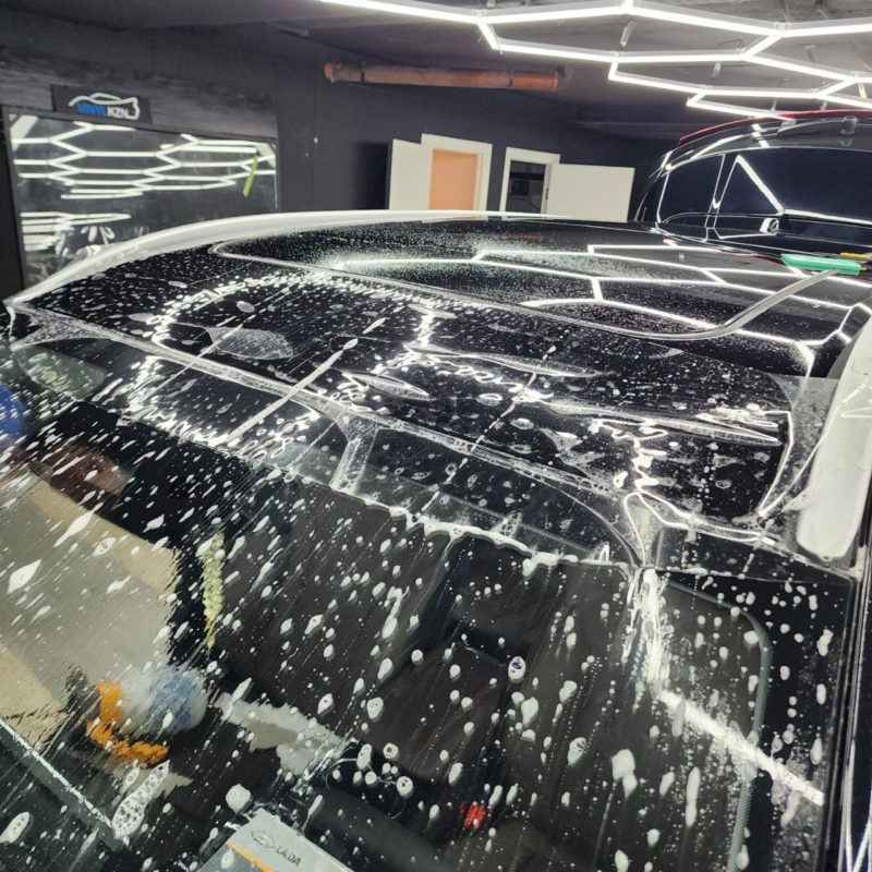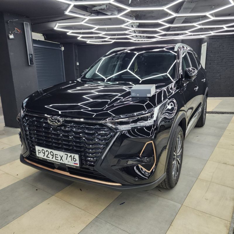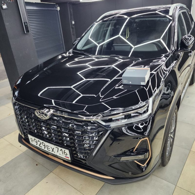 — Забронировали прозрачной полиуретановой плёнкой капот, фары, бампер, часть крыши и зона погрузки, дополнительно защитили центральную консоль и монитор глянцевой полиуретановой плёнкой!