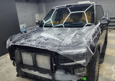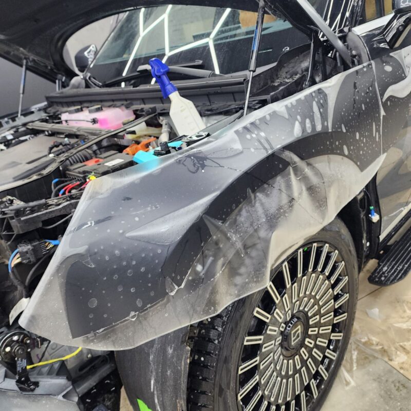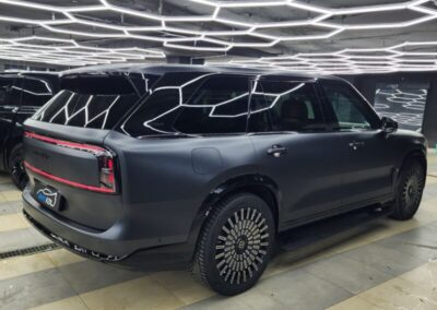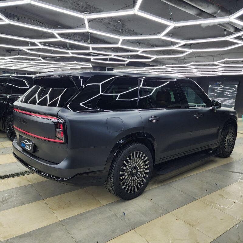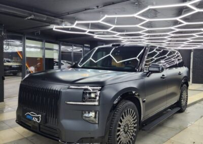 — Сделали антихром всех элементов кузова автомобиля, а после все черные глянцевые элементы оклеили прозрачным полиуретаном.