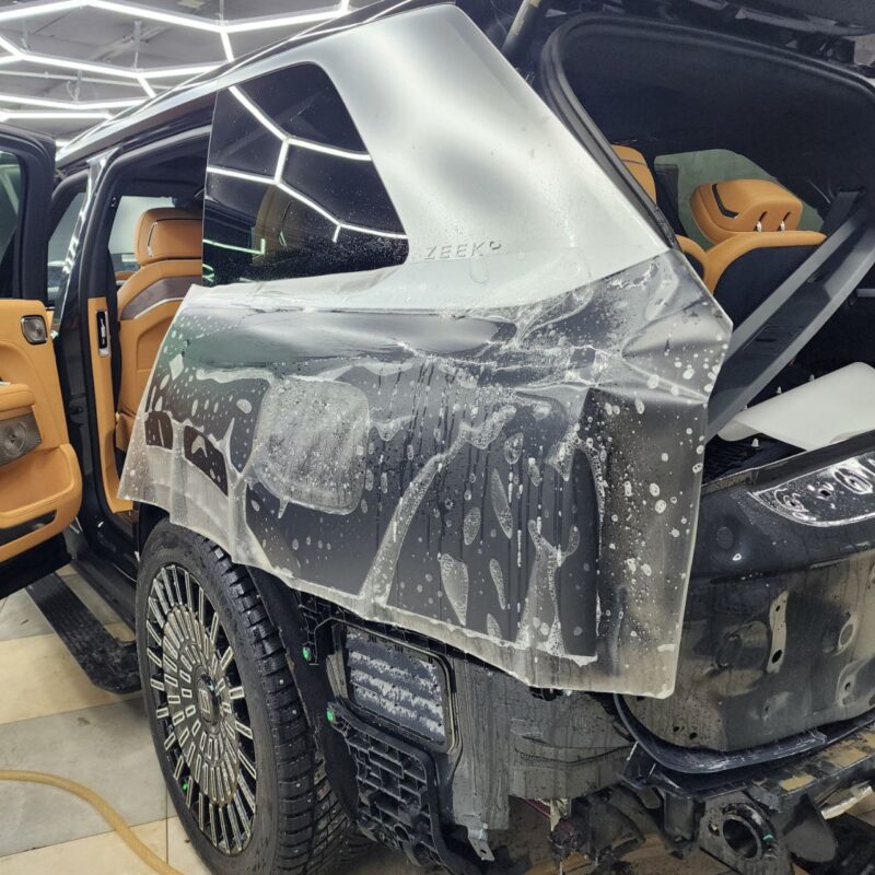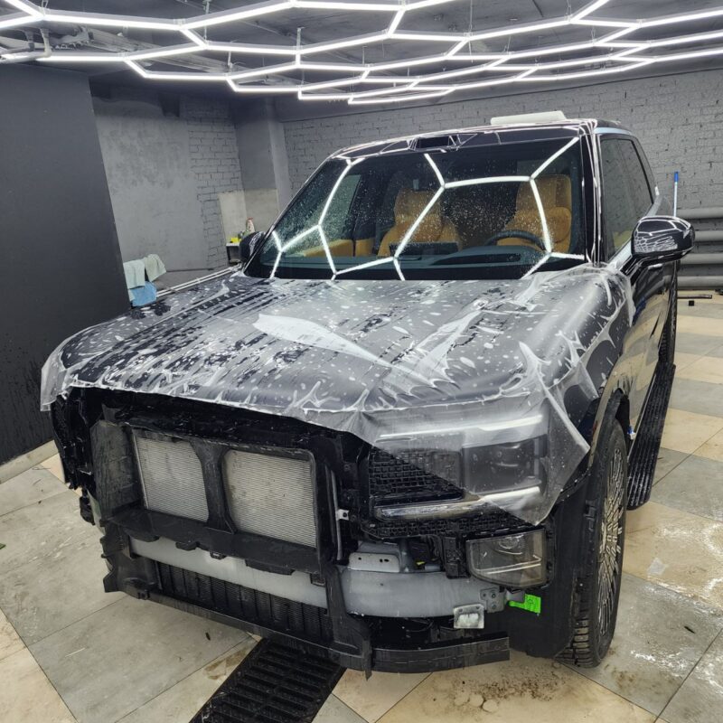 — Забронировали кузов прозрачной матовой полиуретановой плёнкой сатин. Все экраны в салоне защитили матовым полиуретаном.